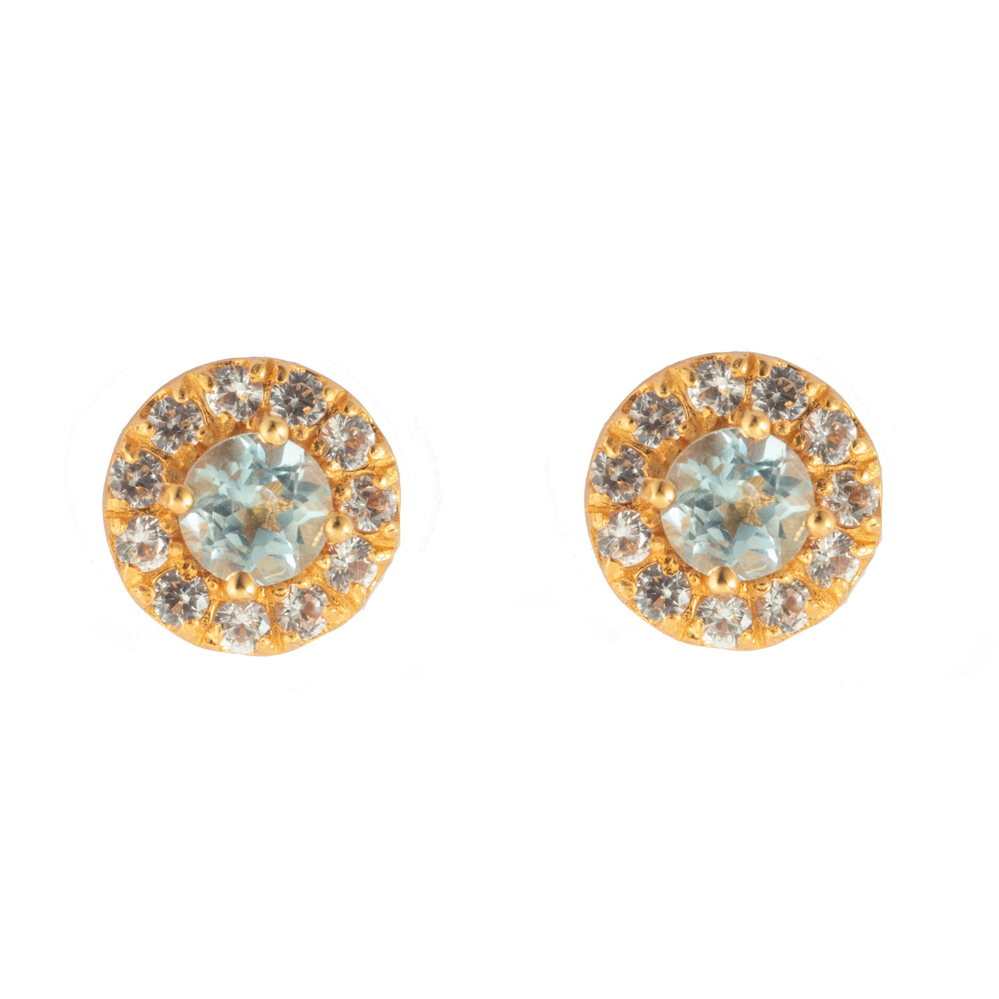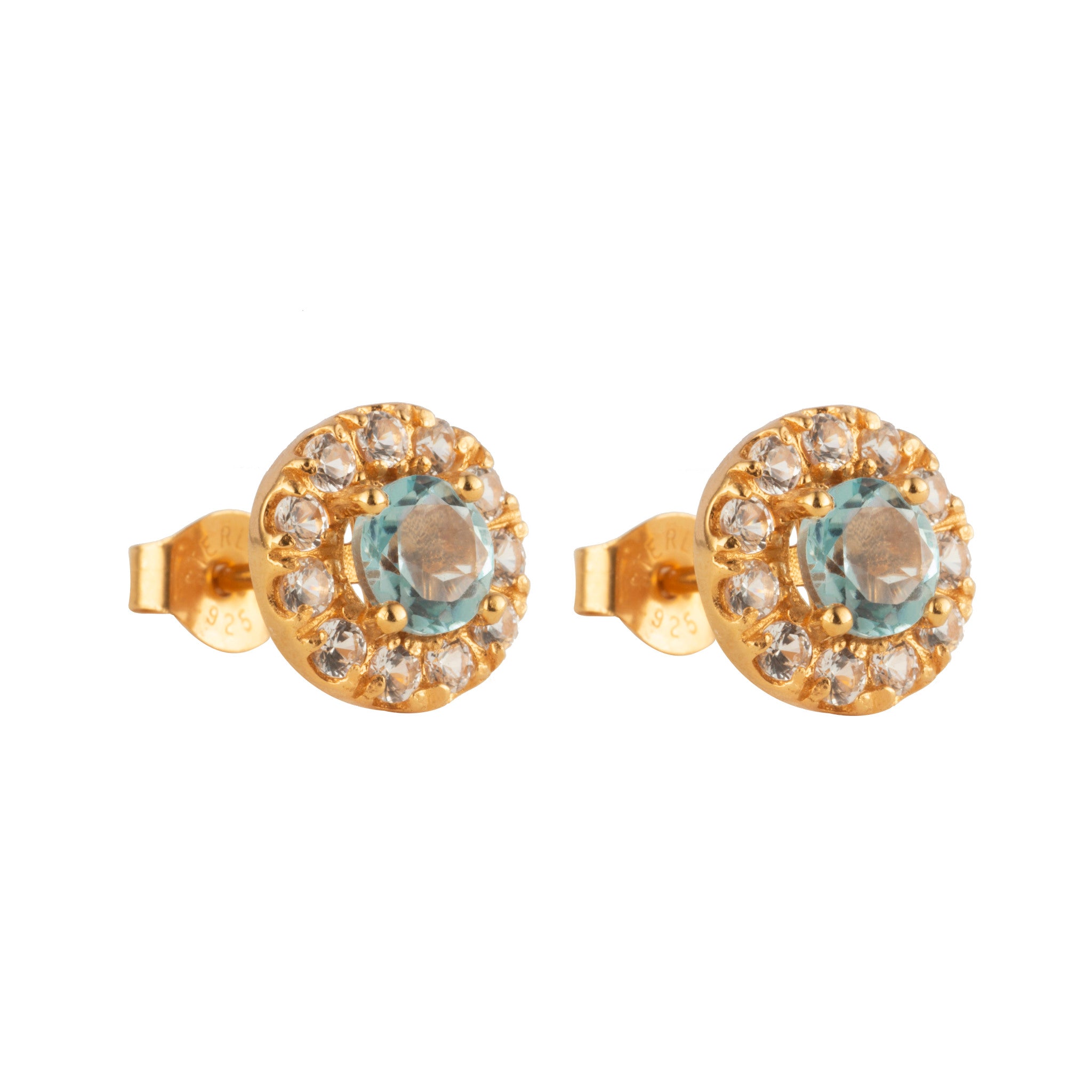Aretes Lili con topacios azules y zafiros blancos. Dale más brillo y color a tu vida con estos hermosos aretes de diseño atemporal.