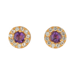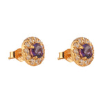 Aretes Lili con amatistas y zafiros blancos. Dale más brillo y color a tu vida con estos hermosos aretes de diseño atemporal.