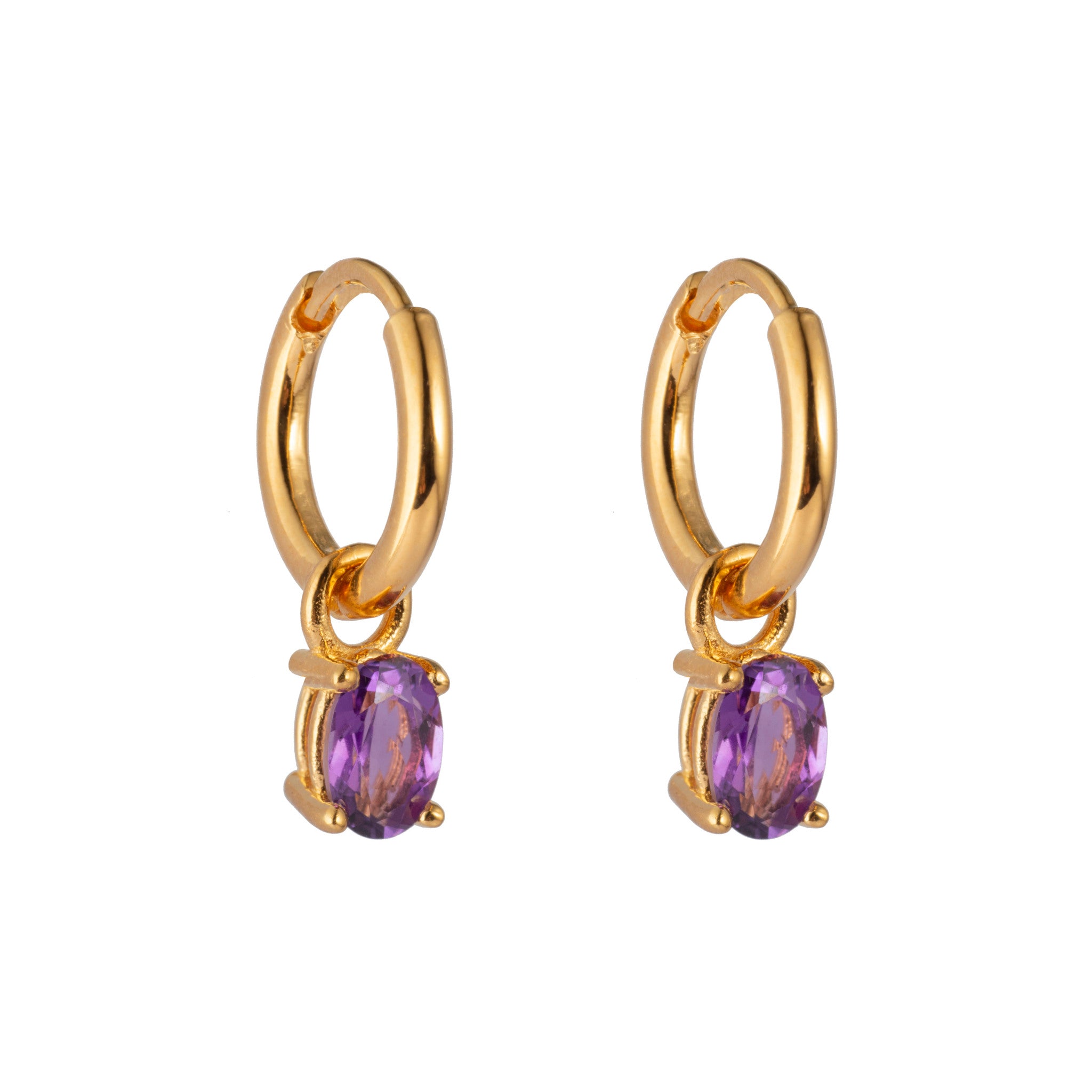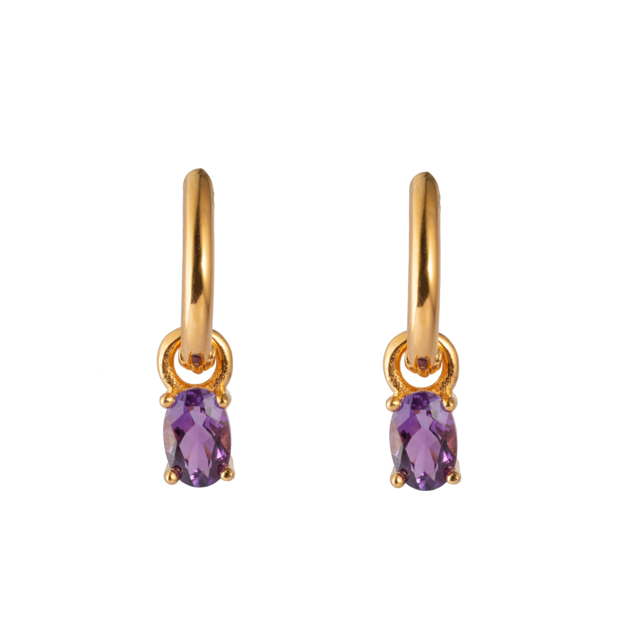 - Amatista oval 5x3 mm- Arracadas tipo huggie de 15 mm de diámetro