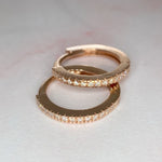 Clásicas Arracadas estilo huggie con diamantes engastados en francés (french v split) en oro 14K.
