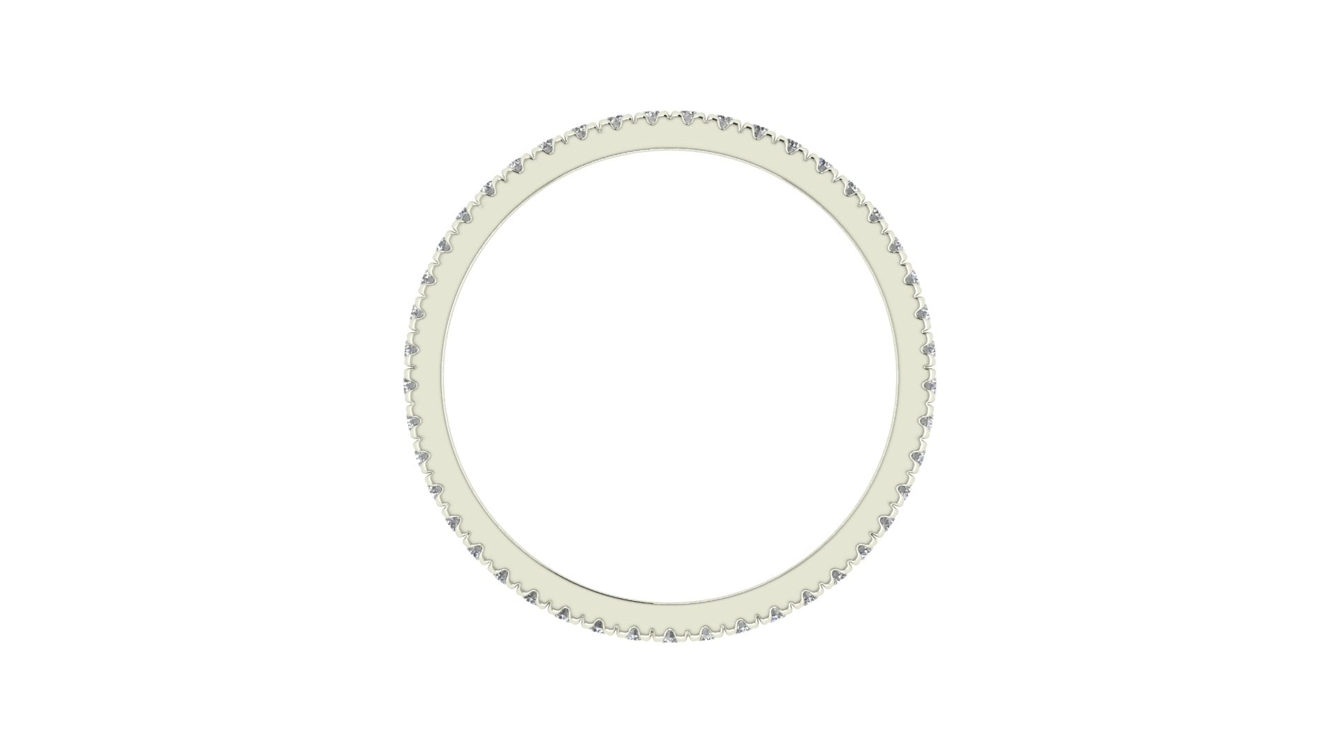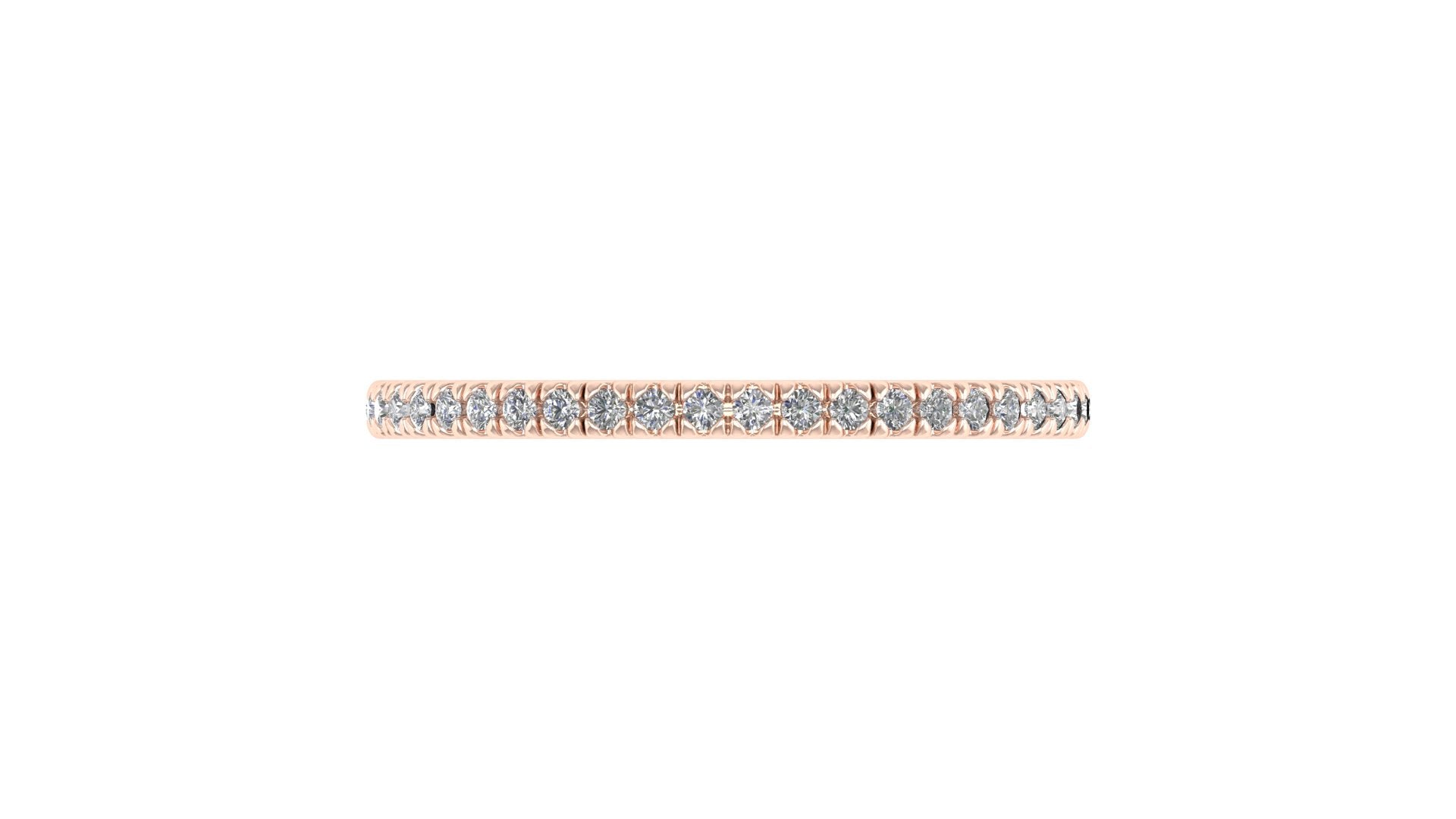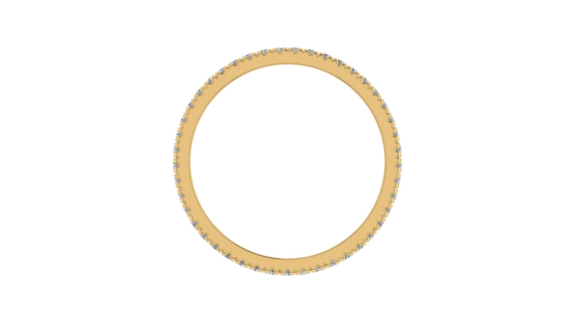 Clásica churumbela completa (full eternity band) con diamantes engastados en francés (french v split) en oro 14K.