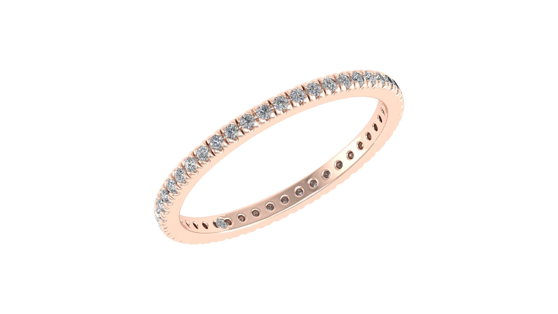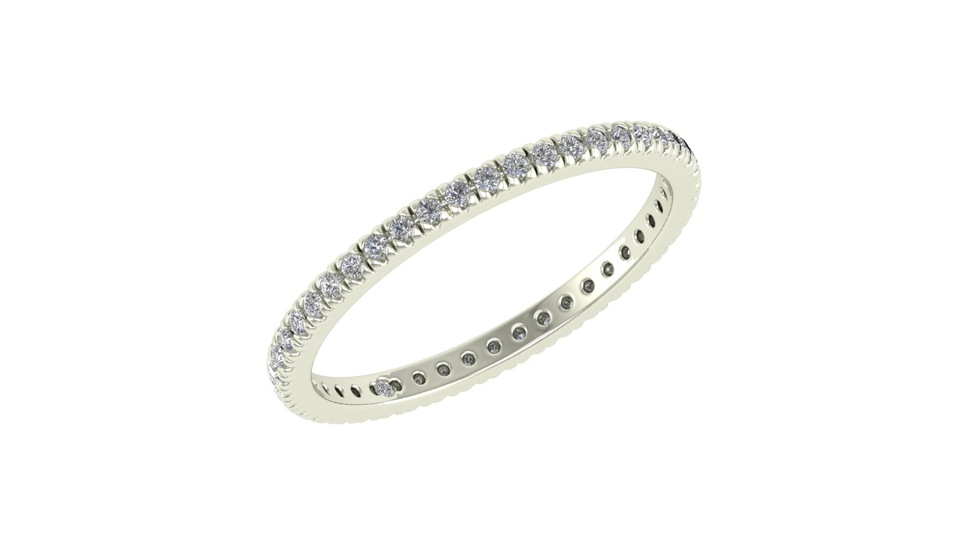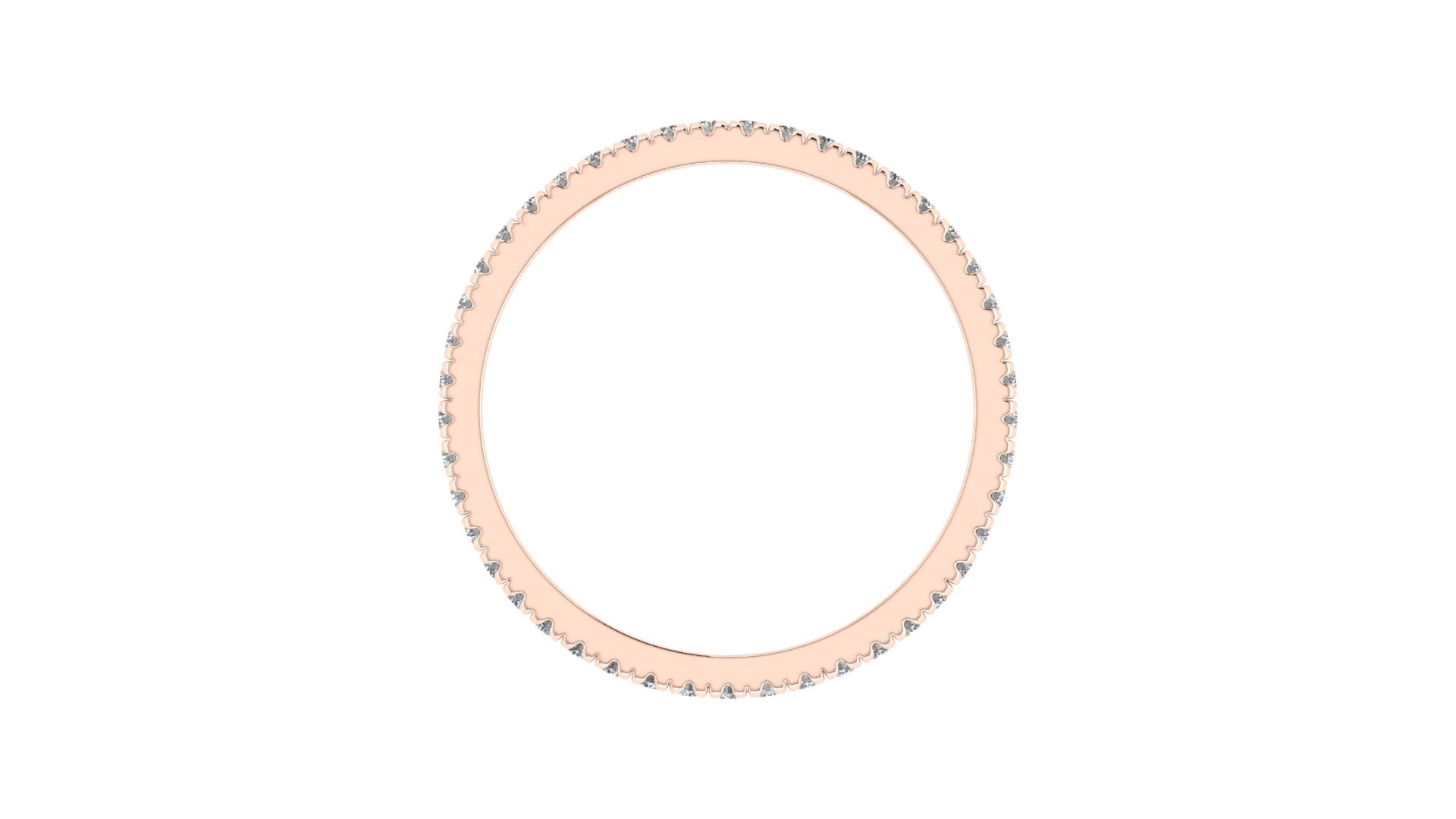 Clásica churumbela completa (full eternity band) con diamantes engastados en francés (french v split) en oro 14K.