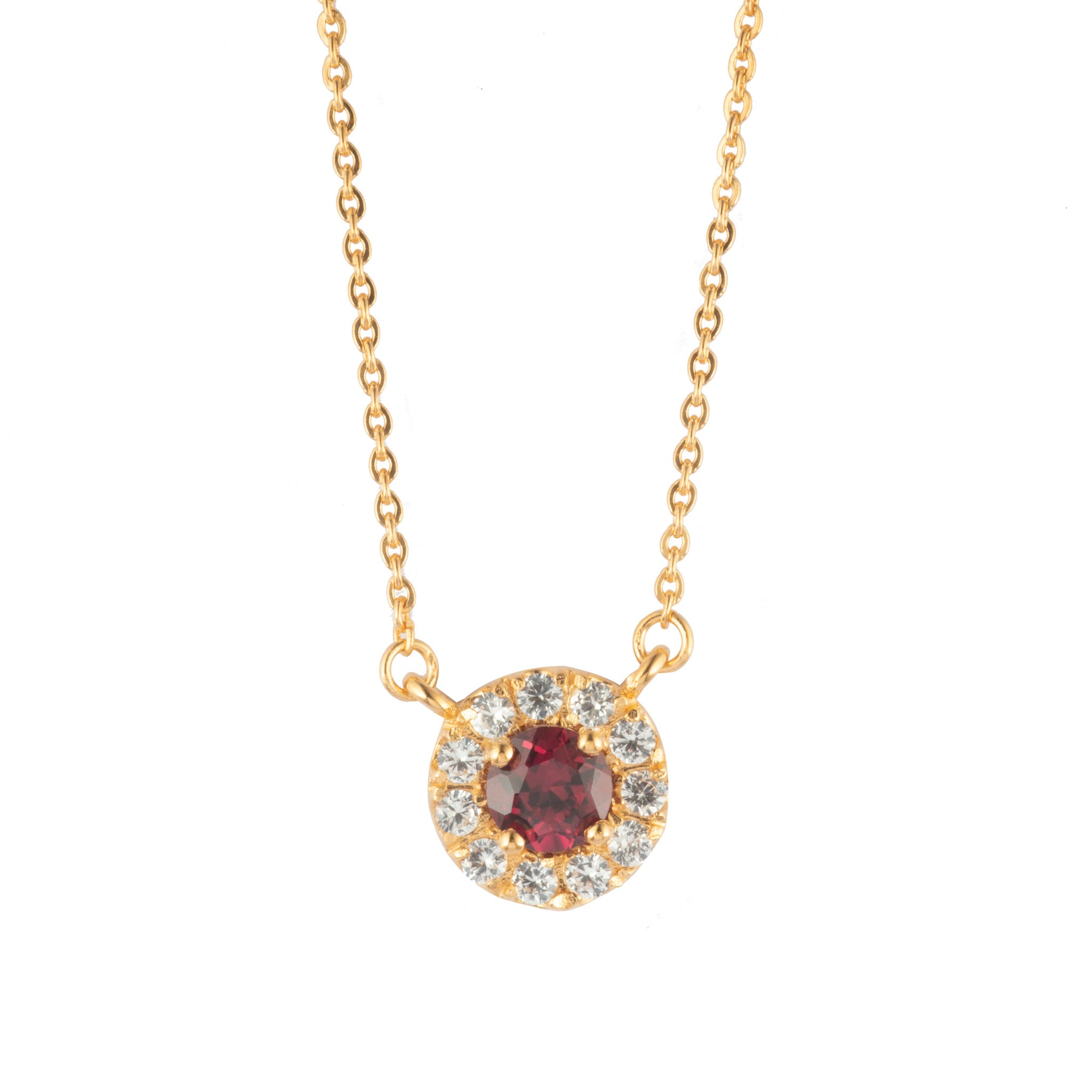 - Rodolita de corte brillante redondo, peso total en quilates de 0.45, medida 5 mm de diámetro.