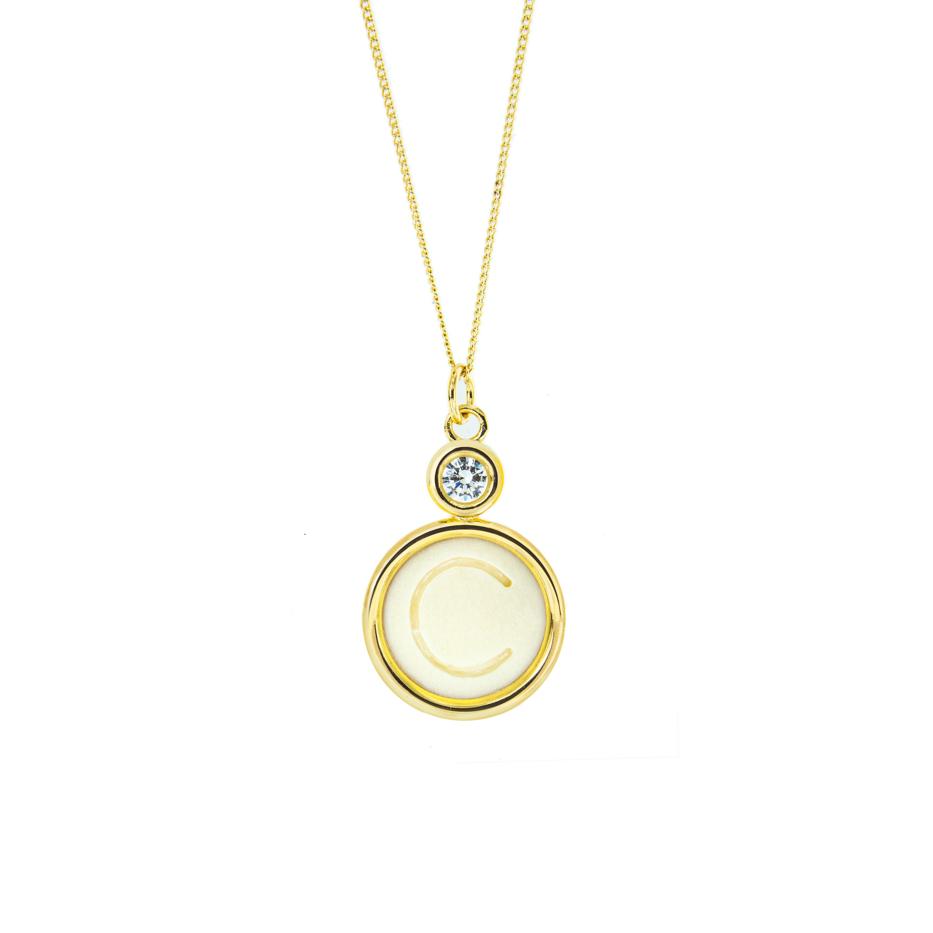 Dije de hueso bovino tallado a mano y cristal Swarovski® en marco de chapa de oro con la letra C. Es un regalo perfecto para Claudia, Cristina, Carolina, Catalina, Camila y Concepción.