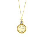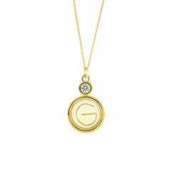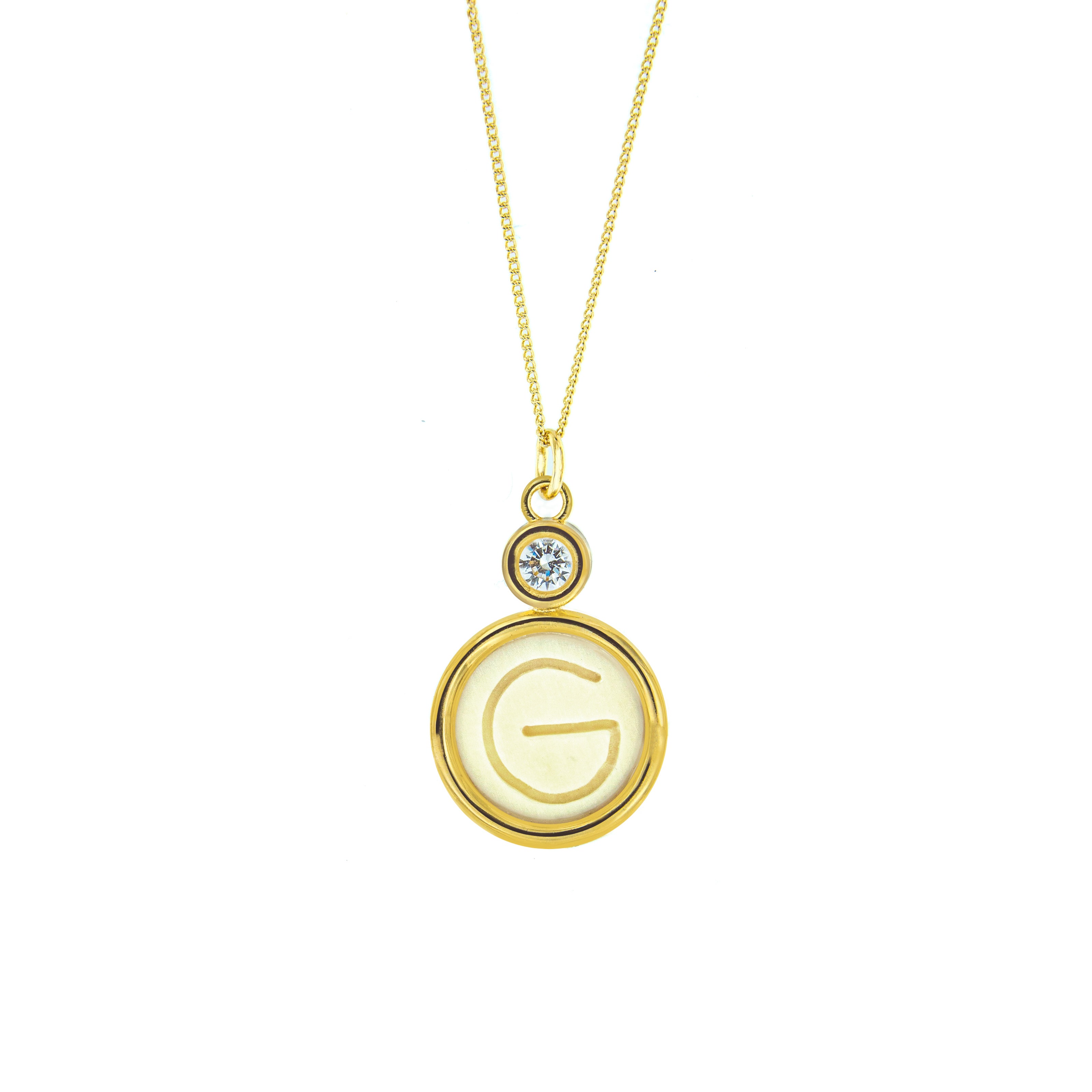 Dije de hueso bovino tallado a mano y cristal Swarovski® en marco de chapa de oro con la letra G. Es un regalo perfecto para Gloria, Giselle, Georgina, o Gabriela.