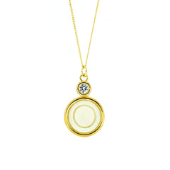 Dije de hueso bovino tallado a mano y cristal Swarovski® en marco de chapa de oro con la letra O. Es un regalo perfecto para Ofelia, Olga u Olivia.