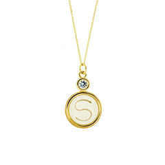 Dije de hueso bovino tallado a mano y cristal Swarovski® en marco de chapa de oro con la letra S. Es un regalo perfecto para Salma, Selene, Samira, Silvia o Sara.