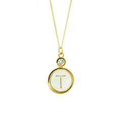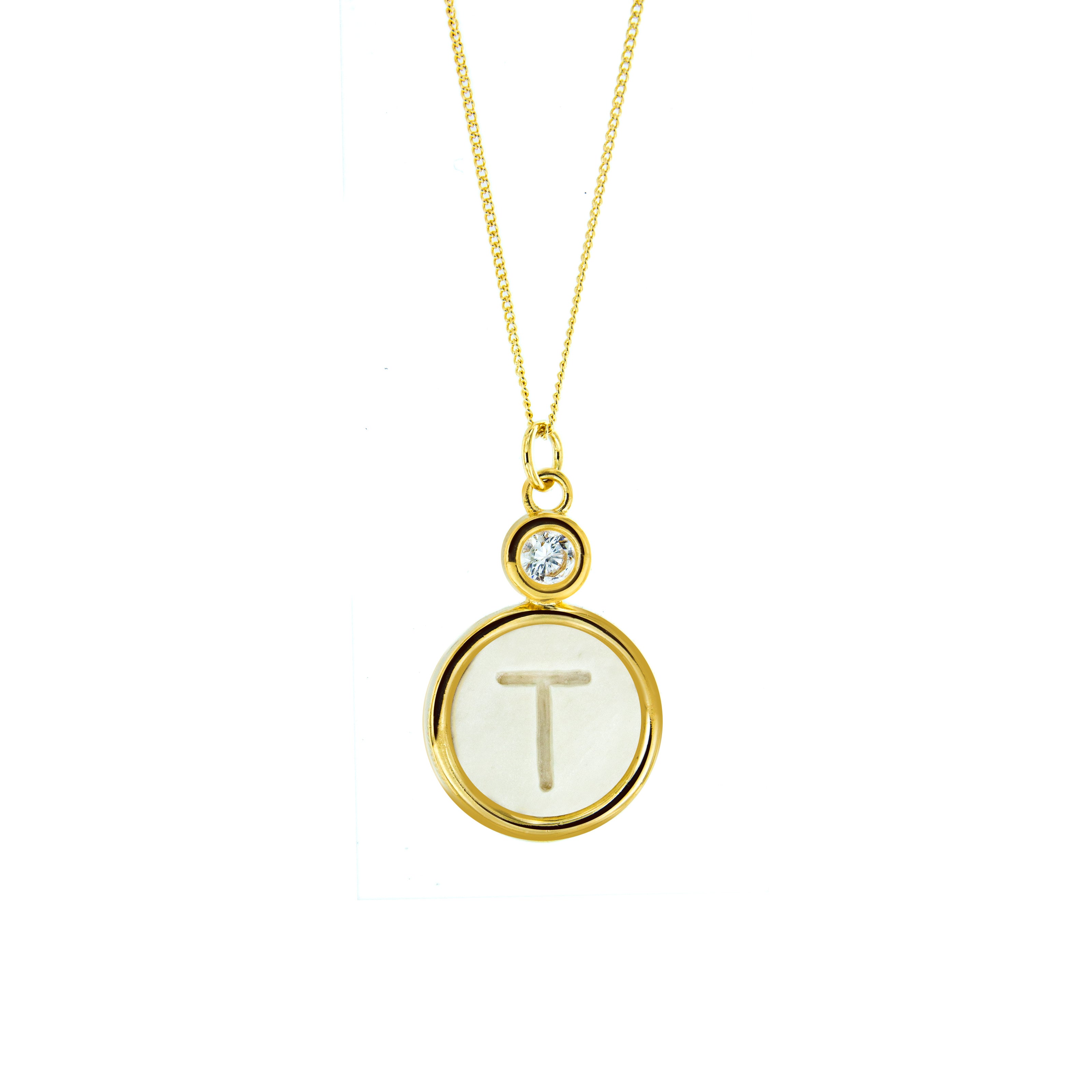 Dije de hueso bovino tallado a mano y cristal Swarovski® en marco de chapa de oro con la letra T. Es un regalo perfecto para Tania, Teresa, Tatiana o Tamara.